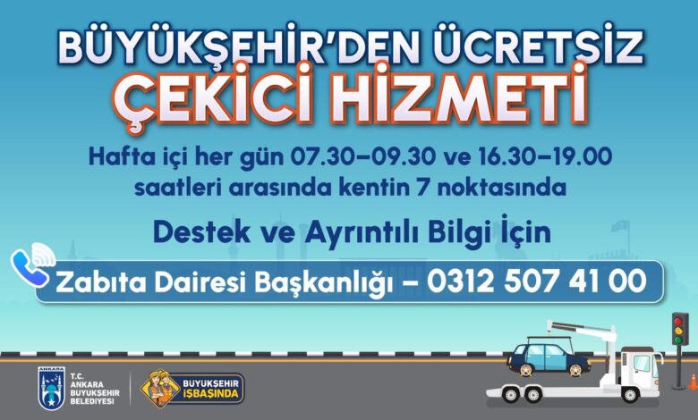 Vatandaşlar yolda kaldıklarında veya çekici hizmetine ihtiyaç duyduklarında Zabıta Daire Başkanlığı Garaj Amirliği’nin 0312 507 41 00 numaralı telefonunu arayarak yardım talebinde bulunabilecek. Oluşturulan WhatsApp koordinasyon grubu sayesinde İl Emniyet Müdürlüğü ve ilgili birimler arasında anlık iletişim sağlanacak.