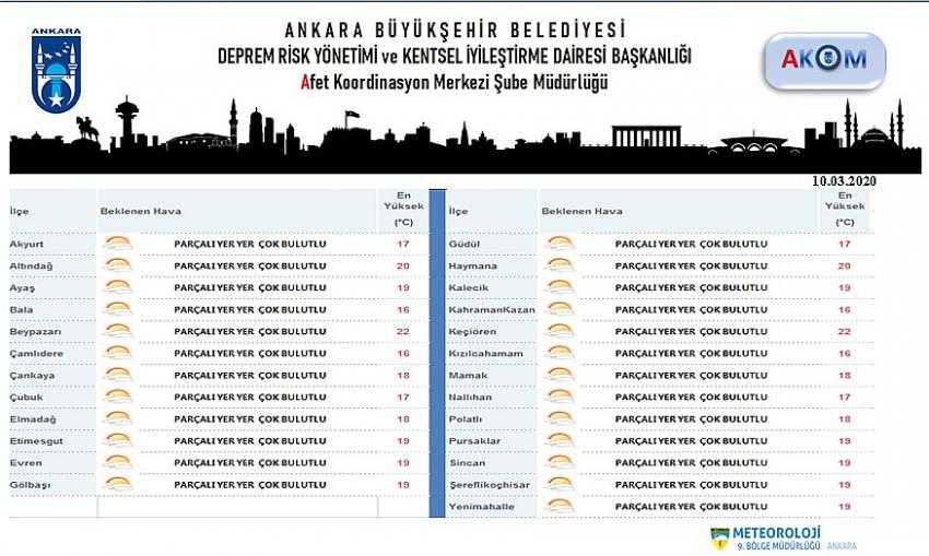BUGÜN ANKARA'DA HAVA; PARÇALI YER YER ÇOK BULUTLU GEÇMESİ BEKLENMEKTEDİR.