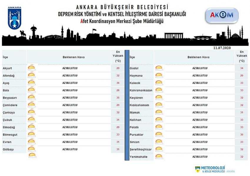 BUGÜN ANKARA'DA HAVA : AZ BULUTLU VE AÇIK GEÇMESİ BEKLENİYOR.