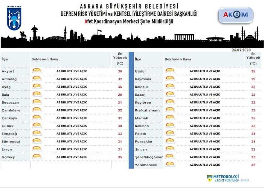 BUGÜN ANKARA'DA HAVA : AZ BULUTLU VE AÇIK GEÇMESİ BEKLENİYOR.