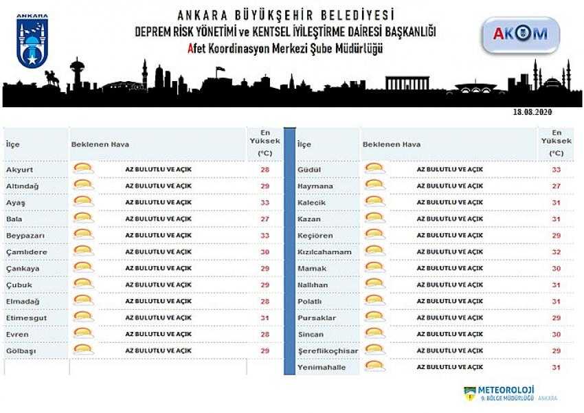 BUGÜN ANKARA'DA HAVA : AZ BULUTLU VE AÇIK GEÇMESİ BEKLENİYOR.