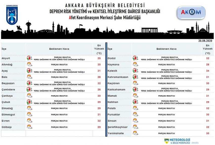 BUGÜN ANKARA'DA HAVA : PARÇALI BULUTLU, KUZEY ILÇELERDE YEREL SAĞANAK YAĞIŞLAR BEKLENİYOR.