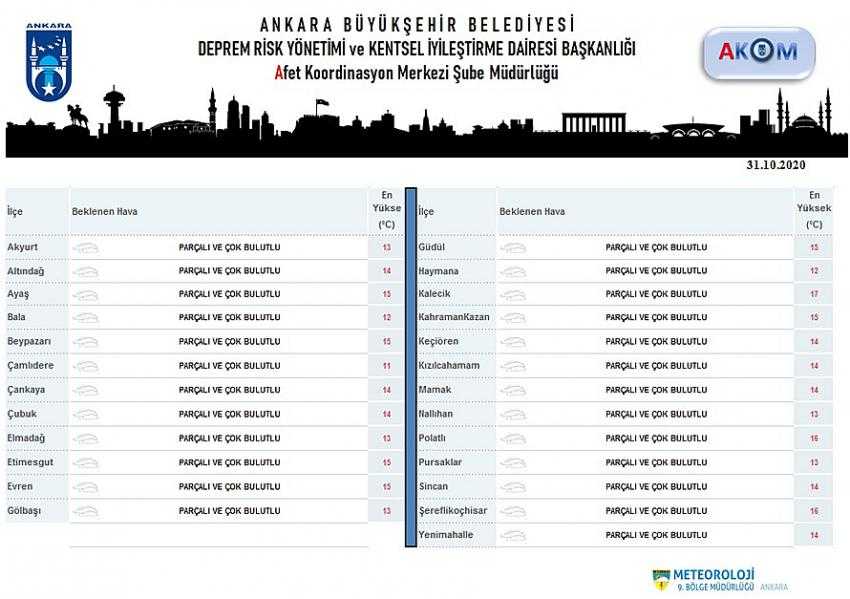 BUGÜN ANKARA'DA HAVA : PARÇALI VE ÇOK BULUTLU GEÇMESİ BEKLENİYOR.