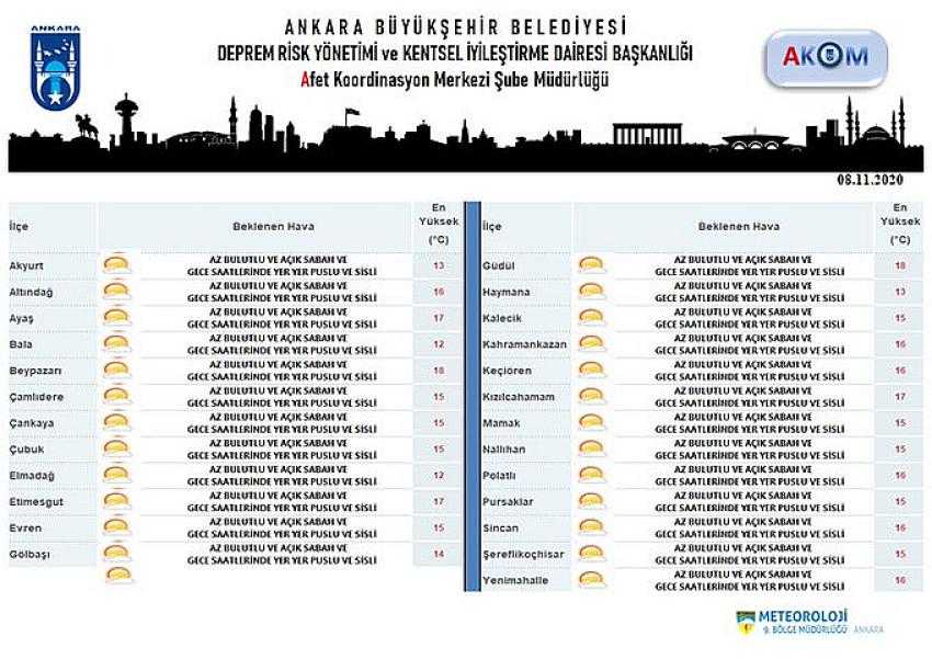 BUGÜN ANKARA'DA HAVA : AZ BULUTLU VE AÇIK, SABAH VE GECE SAATLERİNDE PUSLU VE SİSLİ GEÇMESİ BEKLENİYOR.