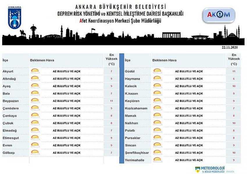 BUGÜN ANKARA'DA HAVA : AZ BULUTLU VE AÇIK GEÇMESİ BEKLENİYOR.