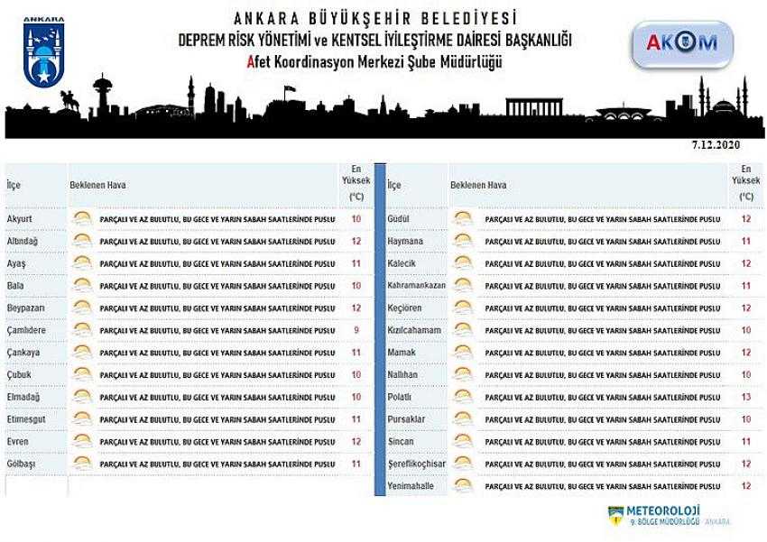 BUGÜN ANKARA’DA HAVA : PARÇALI VE AZ BULUTLU, BU GECE VE YARIN SABAH SAATLERİNDE PUSLU GEÇMESİ BEKLENİYOR.