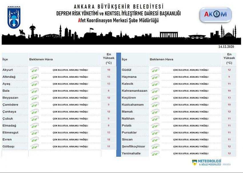 BUGÜN ANKARA'DA HAVA : ÇOK BULUTLU, ARALIKLI YAĞIŞLI GEÇMESİ BEKLENİYOR.