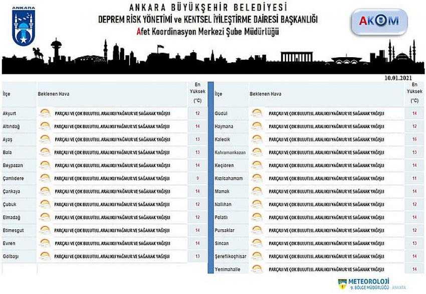 BUGÜN ANKARA'DA HAVA : PARÇALI VE ÇOK BULUTLU, ARALIKLI YAĞMUR VE SAĞANAK YAĞIŞLI GEÇMESİ BEKLENİYOR.