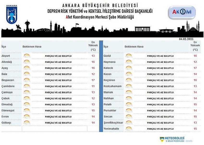 BUGÜN ANKARA'DA HAVA : PARÇALI VE AZ BULUTLU GEÇMESİ BEKLENİYOR.