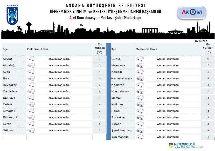 BUGÜN ANKARA'DA HAVA : ARALIKLI KAR YAĞIŞLI GEÇMESİ BEKLENİYOR.