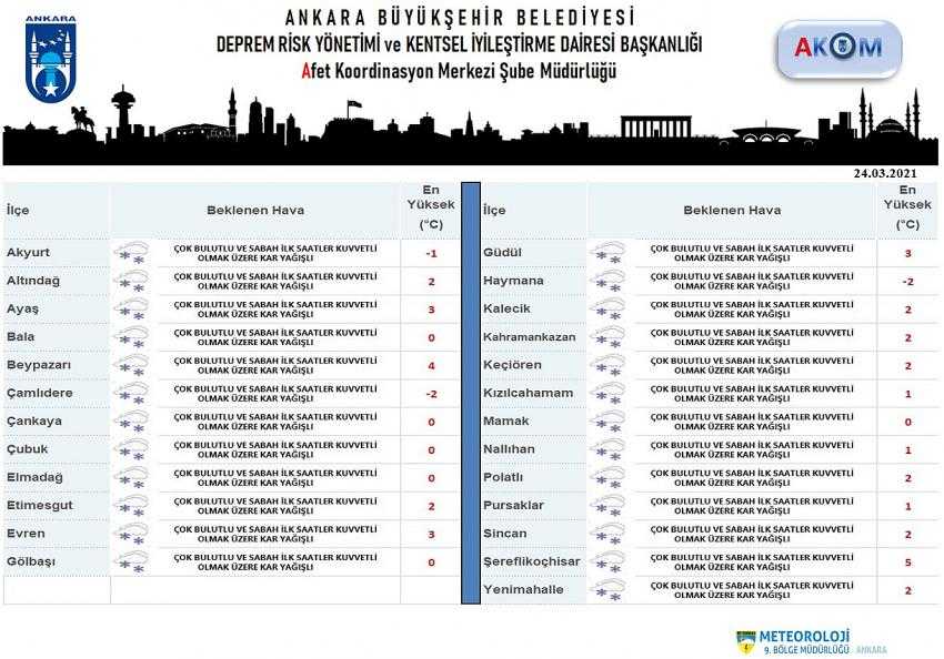 BUGÜN ANKARA'DA HAVA : ÇOK BULUTLU VE SABAH İLK SAATLER KUVVETLİ OLMAK ÜZERE KAR YAĞIŞLI GEÇMESİ BEKLENİYOR.