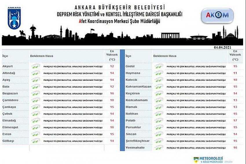 BUGÜN ANKARA'DA HAVA : PARÇALI VE ÇOK BULUTLU, ARALIKLI SAĞANAK YAĞIŞLI GEÇMESİ BEKLENİYOR.