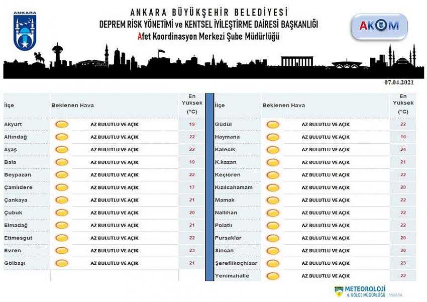 BUGÜN ANKARA'DA HAVA : AZ BULUTLU VE AÇIK GEÇMESİ BEKLENİYOR.