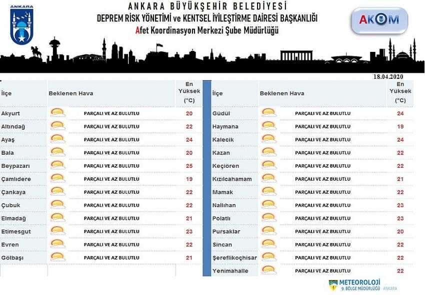 BUGÜN ANKARA'DA HAVA : PARÇALI VE AZ BULUTLU GEÇMESİ BEKLENİYOR.