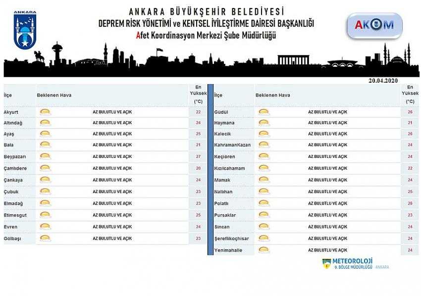 ANKARA’DA HAVA DURUMU 20 Nisan 20200 6 Bir dakikadan az Facebook X LinkedIn BUGÜN ANKARA’DA HAVA; İL GENELİNİN AZ BULUTLU VE AÇIK GEÇMESİ BEKLENMEKTEDİR. 20 Nisan 20200 6 Bir dakikadan az Facebook X LinkedIn Paylaş Facebook X LinkedIn E-Posta ile paylaş Yazdır