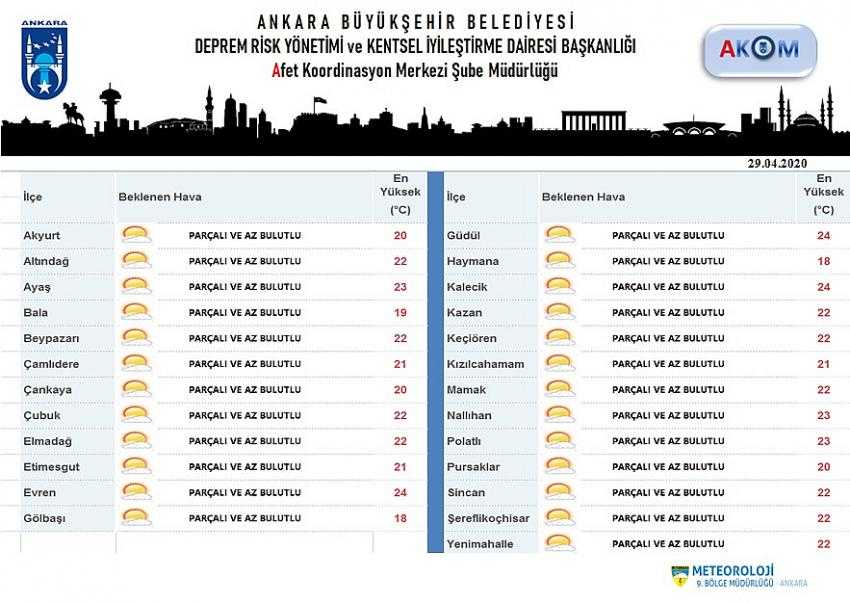 BUGÜN ANKARA'DA HAVA; PARÇALI VE AZ BULUTLU GEÇMESİ BEKLENMEKTEDİR.