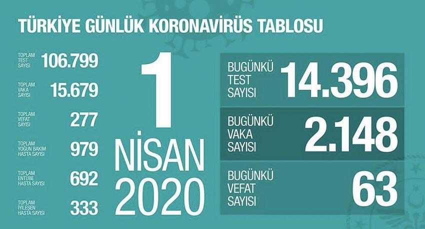 Türkiye'de koronavirüs sebebiyle vefat edenlerin sayısı 277'e, vaka sayısı ise 15 bin 679'e yükseldi.