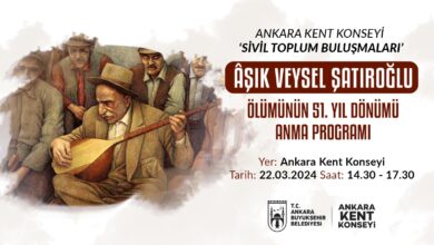 Ankara kent Koseyi, Sivil Toplum Buluşmaları kapsamında Türk halk ozanı Aşık Veysel Şatıroğlu’na özel Anma Programı gerçekleştirecek. 21 Mart 2024,…
