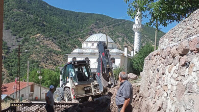 Beypazarı Belediye Fen İşleri Müdürlüğü Dereli Köyü Cami Önünde Bulunan Hafriyatı Temizledi