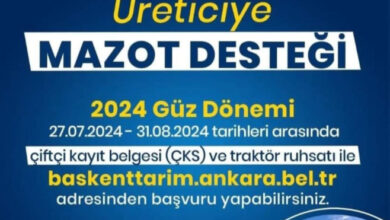 Ankara Büyükşehir belediyesi, üreticiye mazot desteği başvurularının başladığını bildirdi. 29 Temmuz 2024, 12:08 yayınlandı …