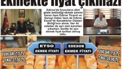 Edirne’de fırıncıların dört gözle beklediği ekmek zammı kararı hem Edirne Ticaret ve Sanayi Odası hem de Edirne Esnaf Ve Sanatkârlar…