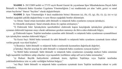 26 Kasım 2024 Tarihli ve 32734 Sayılı Resmî Gazete yayımlandı. https://www.resmigazete.gov.tr Spor Müsabakalarına Dayalı Sabit İhtimalli ve Müşterek Bahis Oyunları…