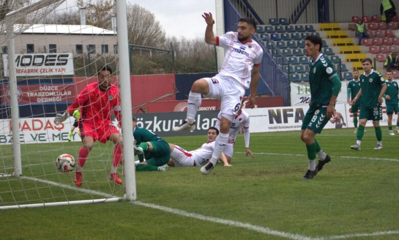 Mustafa Kahraman ve Hasan Kürşat Kara’nın golleriyle 2-0 öne geçen Düzcespor, uzuatma dakikalarında Giresunspor’dan Bedirhan Yanık’ın golüyle maçı 2-1 kazanmasını bildi.