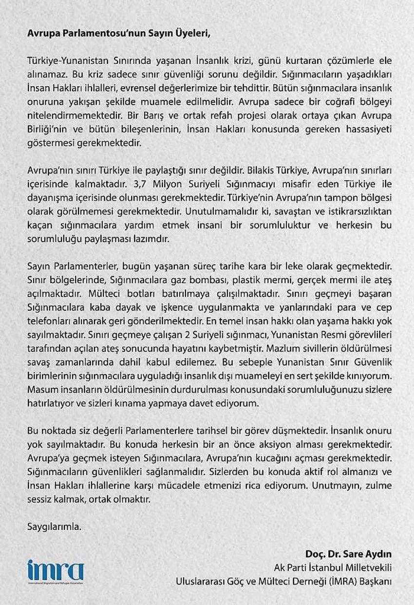 Uluslararası Göç ve Mülteci Derneğinden Avrupa Parlementosuna çağrı.