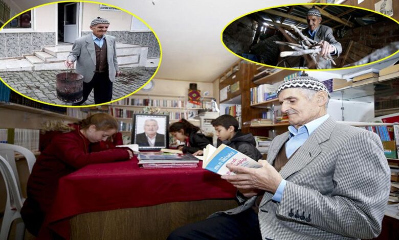 Köyün kütüphanesini ısıtan 76 yaşındaki gönül insanı