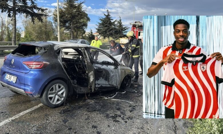 Samsunsporlu futbolcu Musaba’nın aracı seyir halindeyken alev aldı